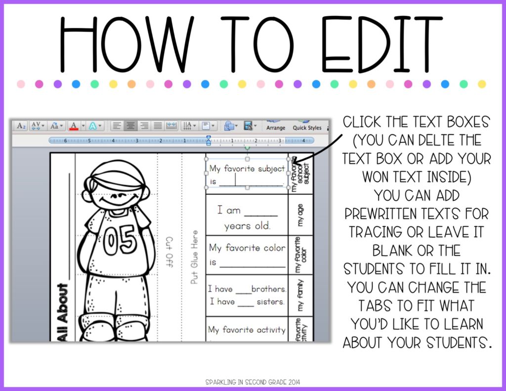The activity comes in two forms, an easy to print form (with pre-filled writing tabs) OR you are able to completely edit the tabs and text boxes to meet the needs of your students.