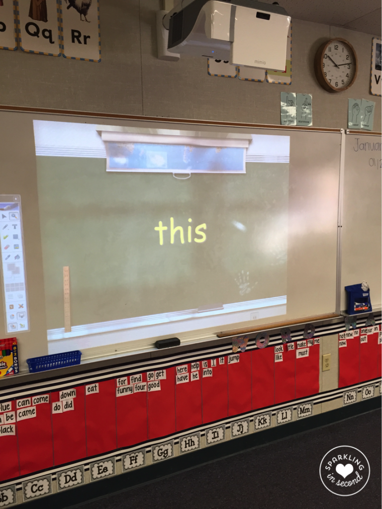 As SOON as we come in, we are reading from our sight word power point. It flips through all of the sight words every 3 seconds. Sometimes I start the ppt later on in the words, sometimes I start at the beginning, it just depends.