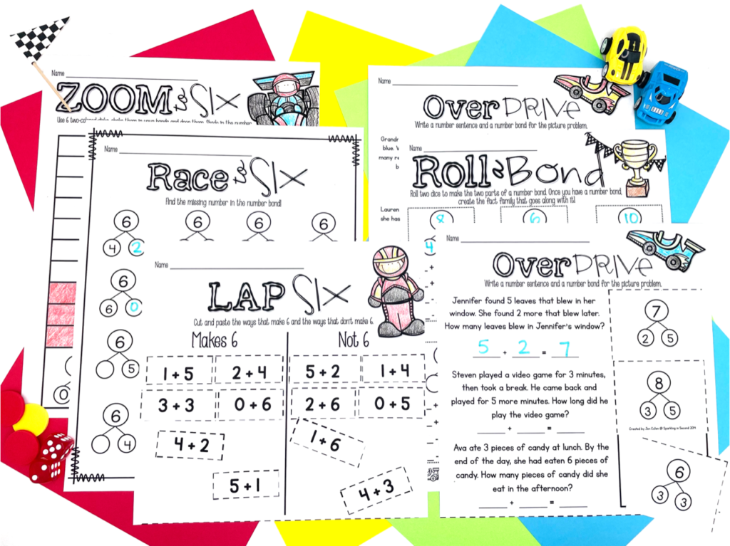 Once students are able to subitize, let’s start working on fact families to 10! We love these games to help us develop our 5-10 fact fluency. Students use manipulatives to help them make fact families using number bonds! We have a lot of fun with these and it’s a great way to use our subitizing skills. A video is linked below to watch, or grab them in my shop here!