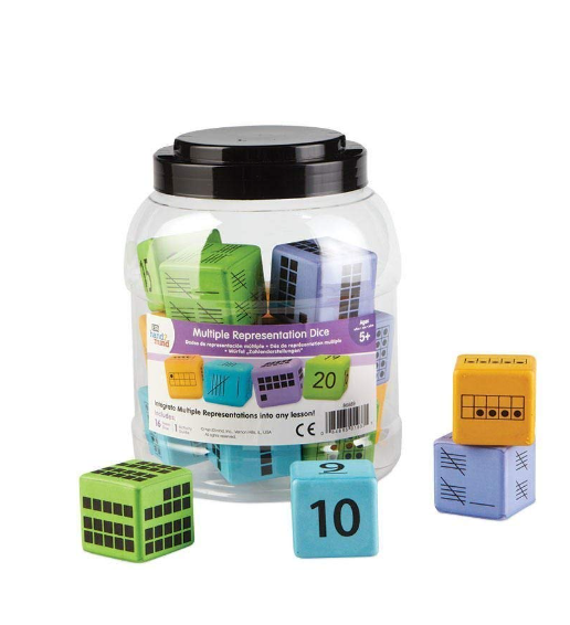 These subitizing dice (affiliate link) are a great addition to small groups. They are color coordinated for differentiation (0-5, 5-10, 15-20). Pull out what you need and use it as a quick practice piece during small group time.