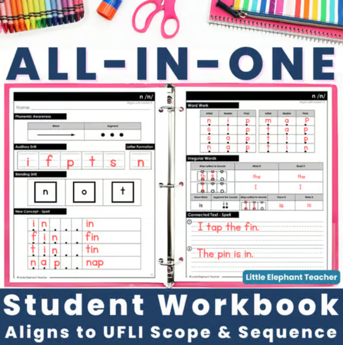 Student Workbook – UFLI curriculum can be done with white boards and markers, but I like having proof of what we have done for the day, especially since I work in intervention and need data to give to their teachers. This is not a must have, but it has been very helpful to guide me and my students through the lessons.